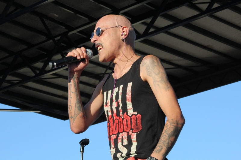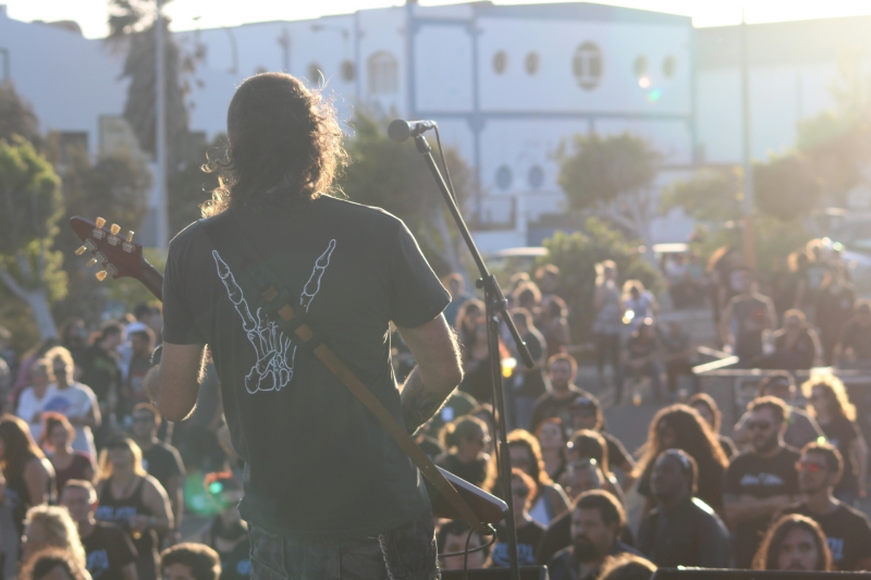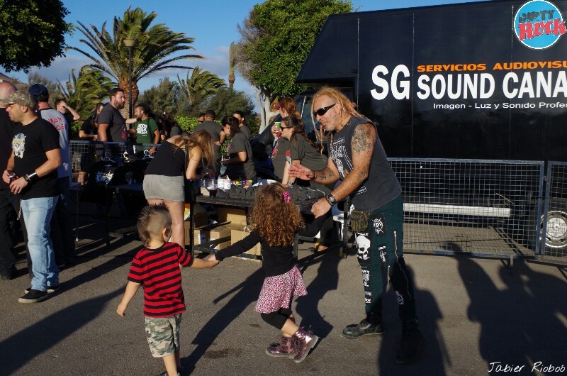 Llegamos en una tarde de medio alisio rolando a tres cuartos… Animal Kaos ya descargaban ante varias decenas que desafiaban el sol picón de Septiembre, “Ciudad Juárez” sonaba macarra y apocalíptica al igual que su tema enseña “Destruido”, esperando el primer trabajo estamos de estos cuatro pibes, nos acreditamos, entregamos nuestros tapones solidarios en los que hemos involucrado a familia, amigos y compañeros de trabajo y saludamos a compañeros, organizadores y músicos ya presentes en el recinto. Ojeada siempre a la tienda Secon Jand Music Store, donde hay siempre cosas frescas e interesantes.