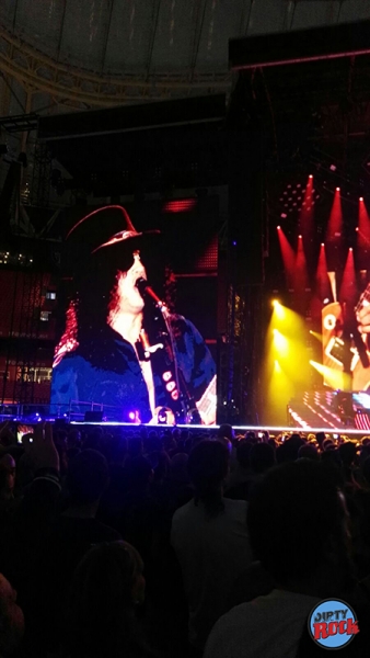 El concierto empezó con puntualidad (otra noticia que no debería serlo pero que lo es debido a los desajustes recientes de Axl Rose) y lo hizo recordando a sus actuaciones de la gran gira de los discos ‘Use your illusion’, interpretando las canciones ‘It’s so easy’ y ‘Mr. Brownstone’. Ya entonces, y atendiendo también a las noticias que llegaban de sus actuaciones recientes, comenzaron a disiparse las dudas: profesionalidad conjugada con el talento de siempre.