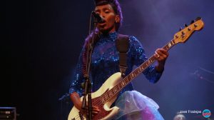 Además de ser una bajista sin parangón, es capaz de llegar a cotas vocales muy altas y emocionarte. Además, con sus ojos profundos y ese penacho mohicano, hace que tu mirada y emoción no tengan tregua.