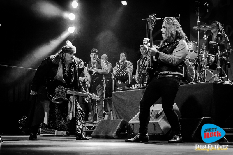 Durante la noche Little Steven nos introduce en su rito y nos contagia con su carisma para infiltrarnos en vena su ‘fórmula’,  aquella para la cual no existe antídoto si se administra con manos expertas, y nadie mejor que él para la incisión. Steve es ante todo un amante del Rock and Roll y no solo ha venido acompañado de su banda, junto a él lo hacen los primeros grupos callejeros de Doo Wop (homenajeados en The City Weeps Tonight), lo hacen James Brown, Etta James, Southside Johnny, Bruce Springsteen, Phil Spector, Tom Petty, Marvin Gaye, The Supremes, Ramones, etc. Durante la actuación oímos todas sus voces, sus sonidos, su aroma añejo, a clásico, a todo aquello que hemos abrazado tantos años y que finalmente se hace carne.