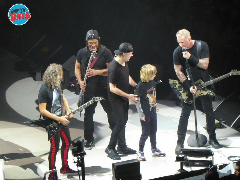 Sigue Trujillo con su pose arácnida y se marca un “Anesthesia” que nos trae a Burton a la memoria. “Die, Die My Darling” de Misfits con el recinto hecho una fiesta. Acordes de “Fuel” y fuego literal en el escenario donde un Lars Ulrich que estuvo prácticamente impecable en su batería giratoria como centro del averno. A saco ya con “Moth into Flame” efecto luciérnagas y charla de James, subieron a un chaval de 7 años con el que confraternizaron teniendo su momento que nunca olvidara.