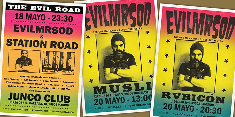 EvilMrSod anuncia tres conciertos en España en mayo, el viernes 18 en Madrid en el Junco Club acompañado de los madrileños Station Road, quienes presentaron hace muy poco su álbum debut “Booty Shake Boogaloo”, y el domingo 20 de mayo por la mañana Torrelavega en Musli (CANCELADO), y en Santander en Rvbicon por la noche.