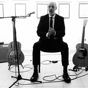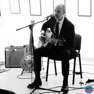 Después de todo ese menú, empezamos con los postres: dos conciertos, dos. La sala, con muchos ojos y oídos expectantes. Oscar Linares (o el “Caballero de la mano en el pecho”) en solitario, entre su acústica, su dobro y su solemnidad en blanco y negro. Buena guardia de asalto para un bluesman. Como es habitual en su repertorio, tocó temas blueseros de los de raíz (Son House, Mississippi John Hurt..) con ambos instrumentos y su sola voz, a pelo en algunas ocasiones. Me quedo con Cocaine Blues y con You are my sunshine por el nivel interpretativo que es capaz de lograr desde la sencillez de ambas piezas.