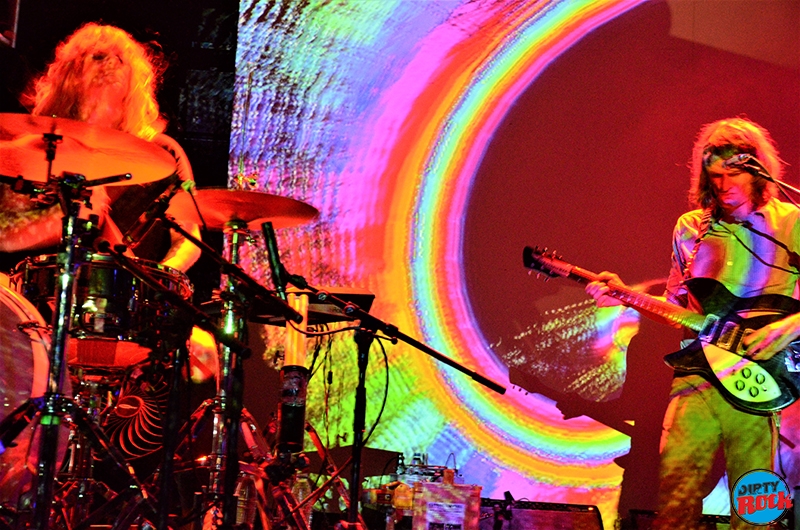 Las lisérgicas y abstractas proyecciones de Bob Mustachio (Mustachio Light Show) fueron una constante, como es habitual, en los conciertos de los de Texas. Pudimos ver a Christian Bland a la guitarra, a través de ellas, y alucinar con la experiencia, sin necesidad de haber consumido nada raro. Las distorsiones de su guitarra parecían una voz humana que nos susurraba palabras incomprensibles. Alex Maas se mantuvo al frente, preciso pero excesivamente íntimo. Cerraban la formación por la derecha Kyle Hunt a los teclados (un genio que entre otras muchas cosas, hace dos años produjo el disco de una banda española: Celestial Burns) y Jake Garcia a la guitarra, este último casi escondido.