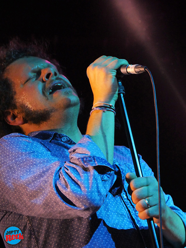 Desde el primer tema “Rainbow Pills” su frontman Toño López atrapa tu mirada, sus gestos te recuerdan maneras de otros músicos veteranos, tiene una voz como el recorrido de esos ríos profundos de Norteámerica y se acompaña a la percusión con panderetas y maracas. Es un rock festivo que te zarandea.