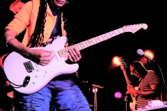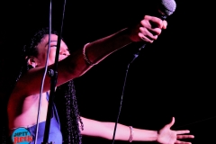 Enseguida se crea el clima propicio para crear ese ambiente de complicidad y francachela. El ritmo se apodera de cada uno de nosotros. Percibes miradas que se cruzan para anticipar los arranques de los temas. A la derecha del escenario, un triángulo cobra fuerza con los tres teclados. Dos al mando de Michiko Hill, madre de la cantante y de origen japonés y el propio teclado de la artista. Cerrando el vértice el padre, Robert (Pee Wee) Hill al bajo con su peculiar manera de pellizcar y rasgar las cuerdas. En el centro se sitúa el batería, Michael White manejando las baquetas. Es un enamorado de la música y multiinstrumentista. Además canta y toca en la iglesia que profesa junto a su mujer.