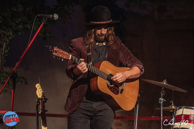 Comento que el Patio Corsario podría ser uno de los sitios más bonitos donde ha tocado…no se si de belleza física, pero sin duda esta cargado de encanto, con ese patio, esos arboles, las plantas y esas desconchadas cuatro paredes que lo cierran; y con cientos de historias que desde hace treinta y siete años, la compañía profesional Teatro Corsario atesora entre esas paredes. Nos presento ante un patio lleno su primer trabajo, ese homónimo «Riverboy» (2019), un trabajo donde tanto los Kinks como el folk inglés, o influencias americanas, lo sobrevuelan, rock barnizado de psicodelia norteamericana y pinceladas de folk inglés.