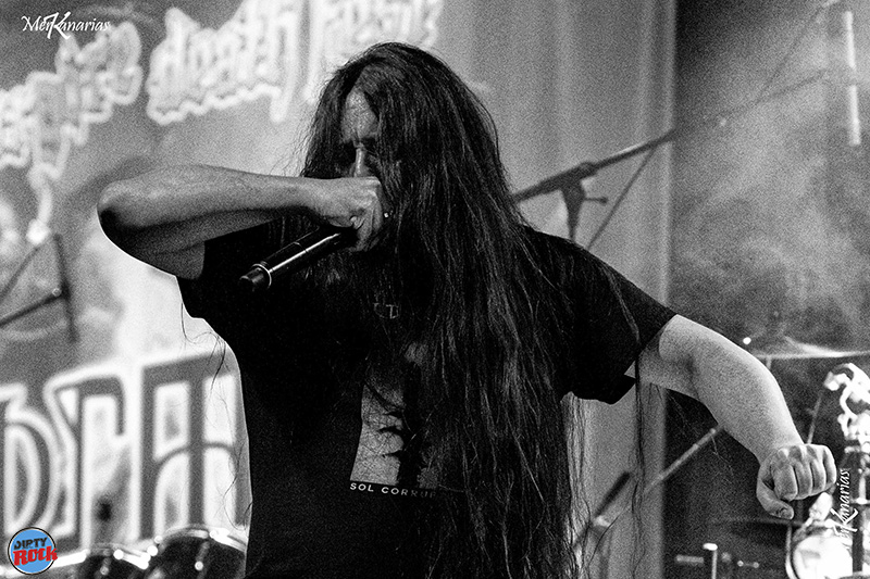 La otra banda que venía de fuera de España eran los HOLOCAUSTO CANIBAL. Desde Portugal llegaron con su GRINDCORE y BRUTAL DEATH METAL que hizo partir cuellos a todo el mundo. Muy buena puesta en escena, se notan los 25 años de actividad imparable de la banda.