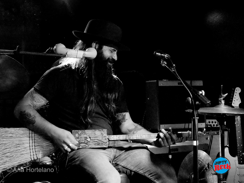 Sobre el escenario vemos un abigarramiento de instrumentos insólitos, poleas, cables, platillos, bombos, teléfono de baquelita como distorsionador de voz, guitarras que no aciertas a describir…Cómo sonarán? Para alguien que bien podría venir del mismo Wisconsin por su aspecto, enseguida te hace sonreír, es un showman, un hombre orquesta lleno de recursos y muy divertido. Pero es que además cuando empieza a desgranar un tema tras otro, te recuerda a esos contadores de historias que conocen el bagaje de la música americana, sus secretos y sensibilidades.