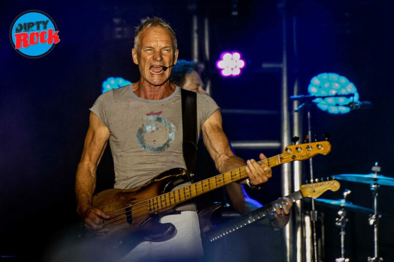 Puntualidad británica, a las 22 horas Sting comenzó el concierto con los acordes de “Message In a Bottle” ante el delirio unánime, tema que alargó haciendo alarde de voz la cual conserva en perfectas condiciones a sus 71 años. El recinto estaba completamente lleno, se habla de 16000 asistentes en los dos conciertos de Canarias. Tres zonas delimitadas, premium, preferente y general cosa común en casi todas las grandes producciones de hoy día aunque no en todas. “Englishman in New York” continuó el concierto, el sonido perfecto y las dos pantallas de los laterales del enorme escenario de una calidad de imagen excepcional.