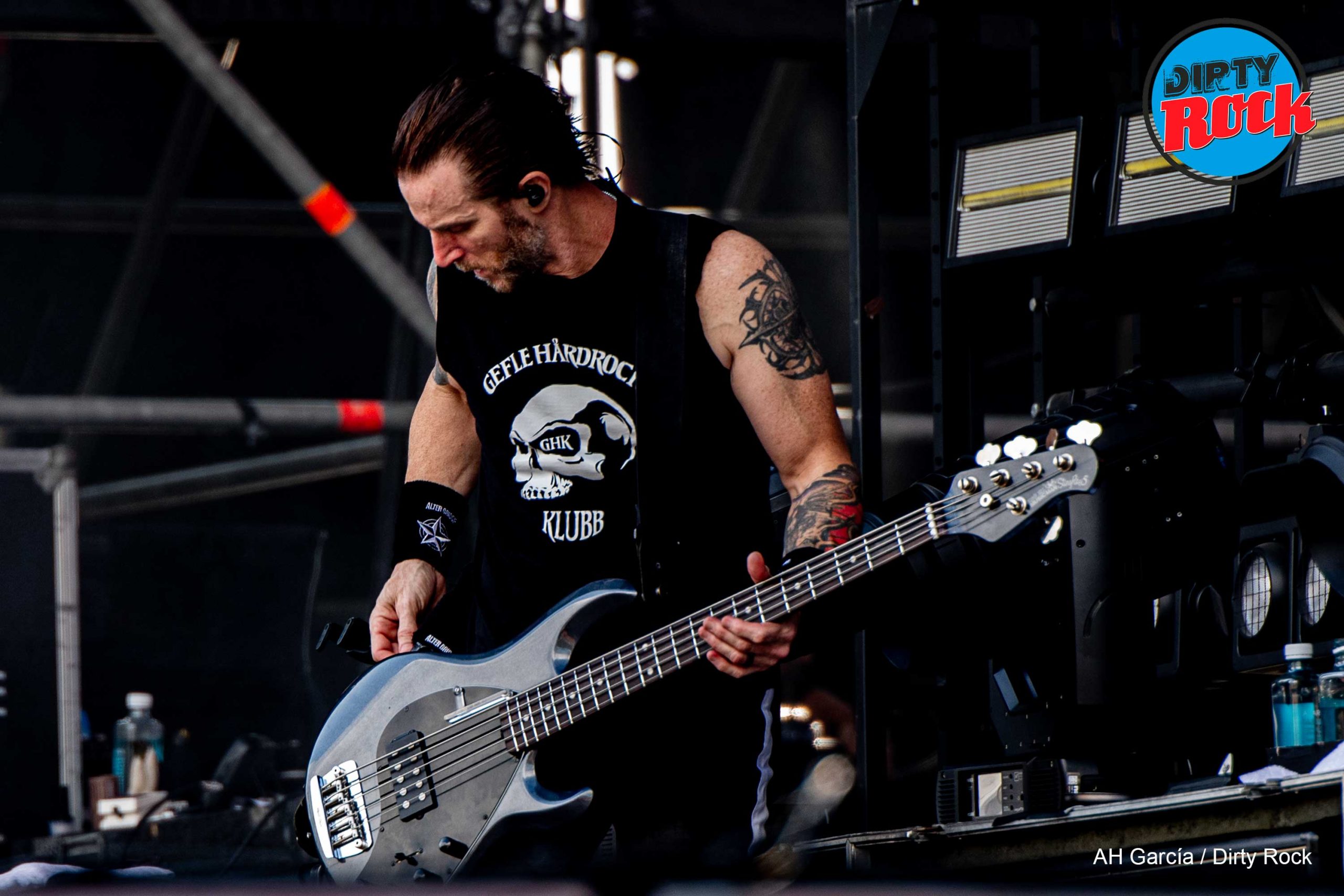Ganas de volver a ver a Alter Bridge intercambiados en hora con otra banda señalada como Elegant Weapons. A pie de pista disfrutamos con Mark Tremonti, Scott Philips y Brian Marshall cuatro generales de nuestro credo junto a Myles Kennedy, calidad a raudales en un Main que presagiaba lo que vendría a la noche. Trallazo como “Silver Tongue” para comprobar que la máquina carburaba perfectamente, “Addicted to Pain” con la voz de Myles que es un bálsamo entre la potente base rítmica y la guitarra del maestro Tremonti, “Ghost of Days Gone By” le dio un cierto respiro. Tienen numerosos registros de hard rock, heavy o grunge del cual se abastecen. Fueron diez temas en los que nos nutrimos de solos como el de “Blackbird” e “Isolation”, terminaron entre puños en alto y aplausos con “Metalingus”.