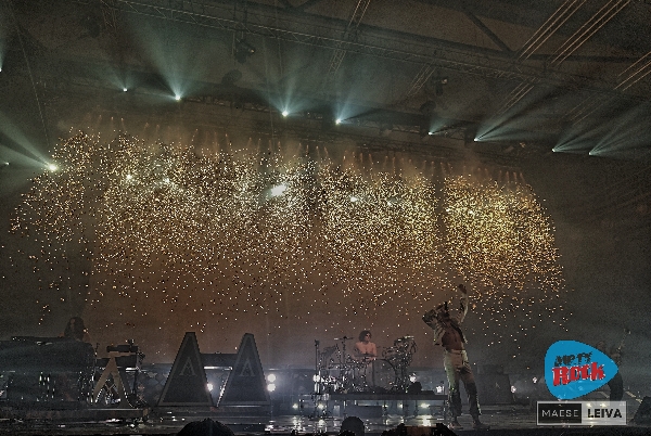 Una gran lona con el logo de la presente gira ocultaba el escenario mientras los operarios preparaban el terreno. De fondo un gran medley en versión orquestal de los temas de la banda. Si, estos chicos han venido a hacer las cosas a la vieja usanza. La intro le confiere un toque épico al concierto. Aunque quizás diez minutos fueron demasiado, dejaron claro que la filosofía de “menos es más” no entra en sus planes. Cuando por fin cayó el telón, tras la batería aparecieron los cuatro miembros uniformados con una estética que recordaba a los modelos de Freddie Mercury en los 70. Y con “The Falling Sky”, uno de los mejores cortes de “Starcatcher” empezaron el concierto tirando ya de pirotécnia y llamaradas. Desde el primer minuto Greta Van Fleet estaba dispuesto a darlo todo. Una puesta en escena potente y un gran tema. La noche empezaba muy bien.