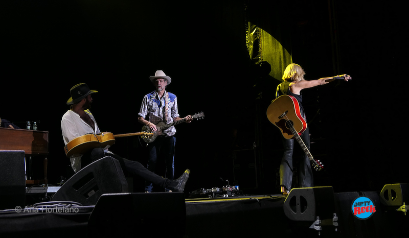 Una diosa sobre el escenario inundó de luz la noche. Sheryl Crow, gran compositora y cantante estadounidense agradeció al público su paciencia ante el desbarajuste provocado por la tormenta. Hoy su concierto en Madrid se ha visto afectado por una tromba de agua y granizo que ha caído en la zona. El equipo de Noches del Botánico ha tenido que drenar el agua de la pista y remediar el estado en el que se encontraban las instalaciones. Nuestras felicitaciones!