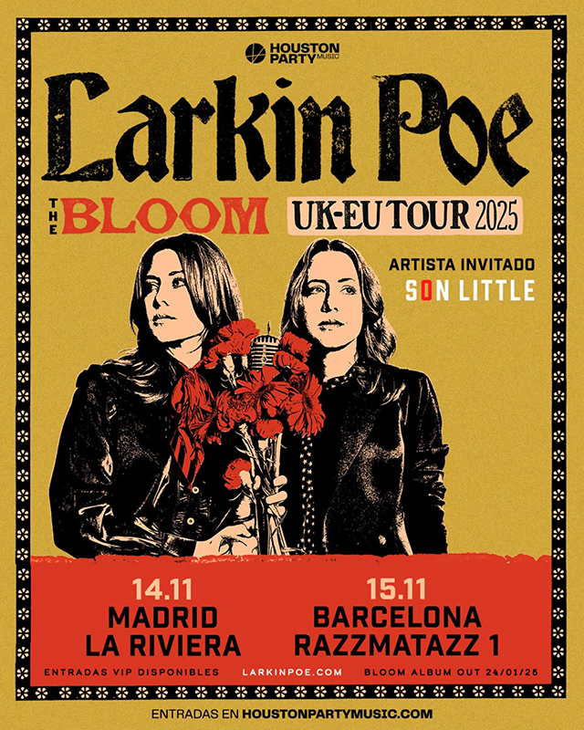 Larkin Poe actuarán el 14 de noviembre de 2025 en Madrid (La Riviera) y al día siguiente, el 15, en Barcelona (Razzmatazz 1), para presentar su próximo disco, “Bloom”, que se publicará el 24 de enero. El estadounidense Son Little será el telonero en ambos conciertos.