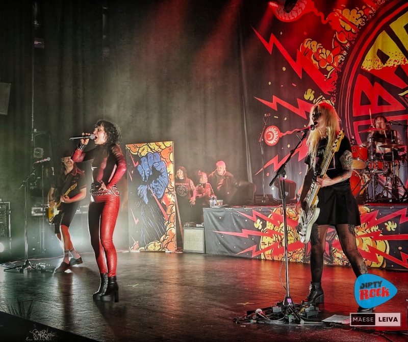 Enlazaron con “Forward In Reverse” con una muy coreada “You Got a Problem Without Knowing It” (con guiño final a Iron Maiden) que puso a bailar a toda la sala. Cecilia es completamente imprevisible y en un simple parpadeo la has perdido de vista y te la puedes encaramada a la batería para saltar para rematar un tema. Quien dijo que era la versión femenina de  Michael Monroe no le faltaba razón. Es un auténtico animal de escenario, enérgico y volátil como una carga maldita de nitroglicerina en mal estado que deseamos que nos explote delante. “It’s a Sin” volvió a ver como se encaramaba a la valla. Demasiado tentador para que solo se quedara allí.