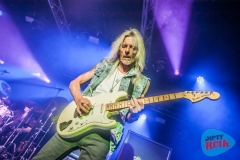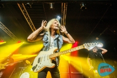 Pero esa complicidad no fue solo con el público. Su continua interacción con el resto de los miembros de la banda le añadía un punto extra de atención. No dudaron en soltar la caballería de buen principio con dos temas como “Strong as a Rock” y “Voodoo Nights”. Pero tras cuatro temas a un nivel tan alto era necesario un pequeño descanso. Sobre las tablas quedaron Doernberg y Gioeli para defender un emotivo “Don’t Say Goodbye” donde el cantante mostró sus dotes plenamente. Y aquí llegamos a una prescindible versión de “Hallelujah” de Leonard Cohen en la que Gioeli bajó a cantar al foso. Un tema que habría que empezar a plantearse vetar su interpretación. Por suerte el nivel volvió a subir con “Oceans Of Time” y “Mystica”. En esta ocasión fue Axel quien incluso hizo una incursión entre el público para saludar mientras ejecutaba su solo.