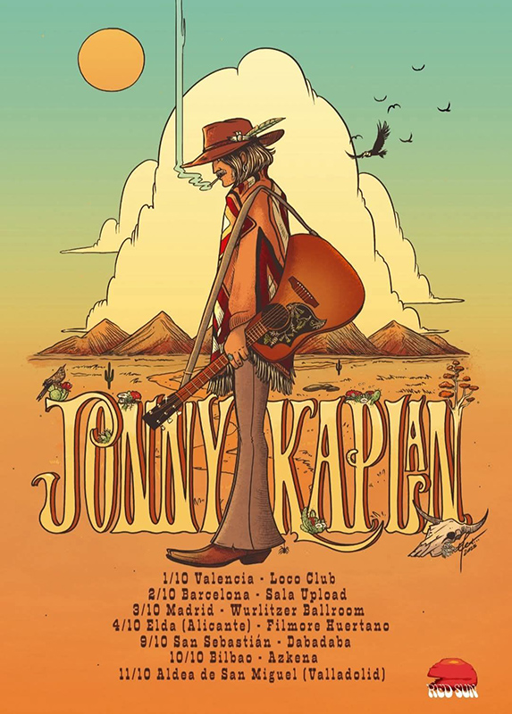 Jonny Kaplan es ese indio blanco con corazón de Apalache cowboy y bandana, originario de Filadelfia pero afincado en la maravillosa Marina del Rey de California, entre el mar y las montañas californianas, no muy lejos de donde vivía su adorado Gram Parsons, del que es miembro de la mejor banda tributo de norteamérica The Son City All Stars.