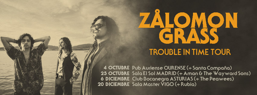 Zålomon Grass reanudan la presentación en directo de su último trabajo “Trouble In Time” anunciando fechas hasta fin de año. El power trío proveniente de Vigo compuesto por Mauro Comesaña a la batería, David Rodríguez al bajo y Gabriel Mckenzie a la guitarra y voz siguen imparables. Experimentados músicos provenientes de otras formaciones (The Soul Jacket, Spoonful!, Karma Animal) pusieron en tela de juicio este nuevo proyecto en 2021 manifestando su debut discográfico. Una primera toma de contacto es un ejemplo donde se manifiesta sin trampa ni cartón el sonido de la banda. Su disco debut “Space Opera” llegaría en 2023, un álbum conceptual con una estética sonora atemporal.