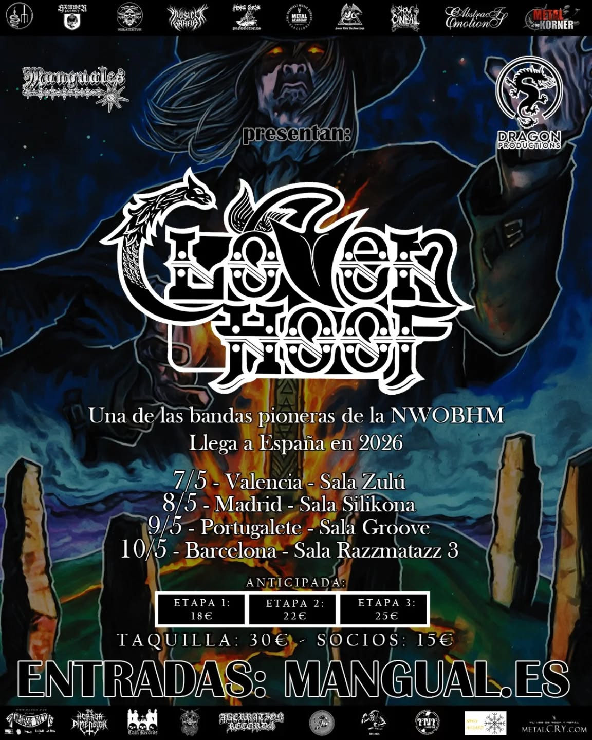 Cloven Hoof son una leyenda viva de la NWOBHM (New Wave Of British Heavy Metal) y estarán en nuestros escenarios durante el mes de Mayo de 2026. Desde 1976 su nombre ha formado parte de primerizas bandas que fueron dado forma al heavy metal tradicional. Cloven Hoof con un estilo que vislumbra sonidos épicos y oscuros supuso un careo con otras formaciones de la época. A lo largo de su trayectoria una de las particularidades de la banda han sido los innumerables cambios de formación. Aún así desde sus inicios su fundador y bajista Lee Payne permanece al frente de la banda. Los primeros años de Cloven Hoof fueron decisivos para dar personalidad a su estilo, siendo sus dos primeros trabajos “Cloven Hoof” (1984) y “Dominator” (1989) fundamentales para consolidarse.
