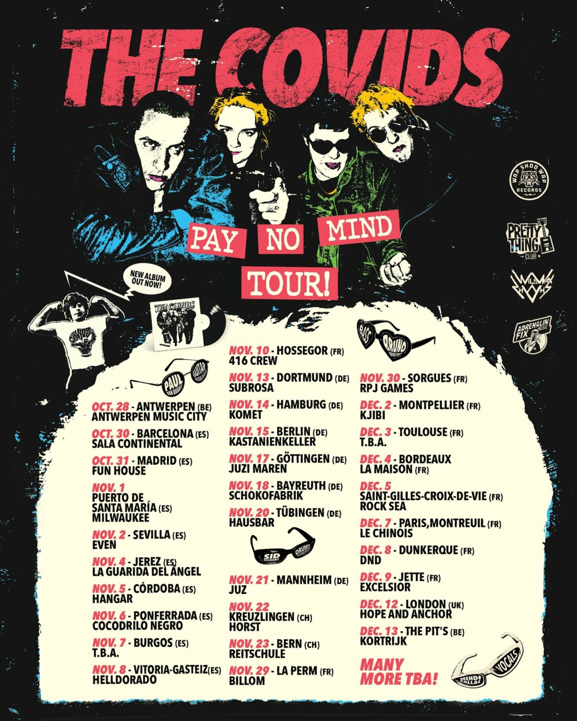 The Covids un año más regresan a nuestro país, no se les debe tratar mal por estos lares ya que no pierden la oportunidad de visitarnos. La formación proveniente de Amsterdam en esta ocasión vienen para presentarnos su último trabajo “Pay No Mind”. De nuevo utilizan la misma fórmula que en su disco debut, punk rock que evoca a la primera oleada de bandas punk que surgieron en el Reino Unido.