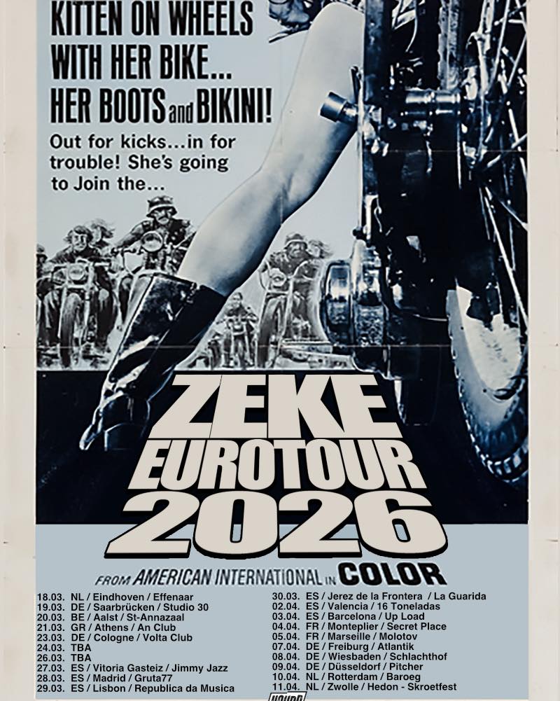 Desde sus inicios, los autoproclamados “desterrados del rock and roll” han tenido claro su misión, lo rápido nunca es lo bastante rápido. Su enfoque siempre ha sido impulsar los límites del rock con riffs afilados, velocidad extrema y una actitud que desafía cualquier norma establecida. Ya bien sea ante veinte personas como ante cinco mil cada concierto que ofrecen es como si fuese el último. Aquí no hay poses, ni disfraces, sin tiempo para el descanso ni coger un soplo de aire, Zeke son pura dinamita sónica. Con su regreso a Europa, las guaridas del ruido se preparan para recibir de nuevo a una de las bandas más intensas y auténticas de la escena. Estén preparados porque Zeke regresa para ponerlo todo patas arriba.