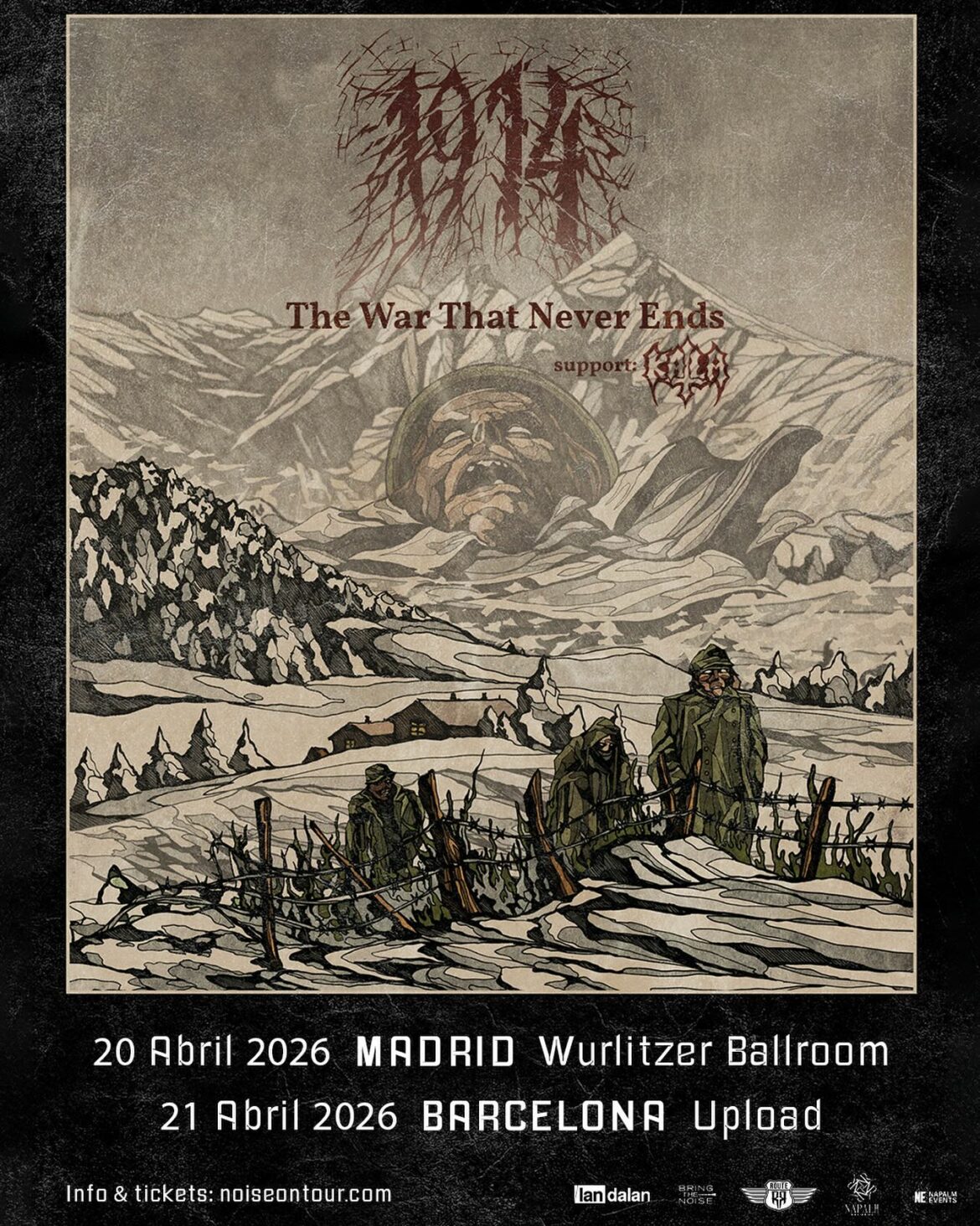 En lo musical, la base instrumental del grupo continúa fusionando el death metal, black metal y un doom opresivo, dando como resultado un sonido masivo y visceral. Las voces desgarradoras refuerzan la crudeza del relato, mientras que paisajes atmosféricos estratégicamente incorporados otorgan un respiro emocional al disco. Junto a esta alternancia entre violencia sonora y ambientación envolvente hay que añadir espacios radiofónicos de la época acuñando una de las señas de identidad de la banda. Desde su fundación en 2014, 1914 no han mostrado fisuras en su camino ascendente. Su álbum debut, “Eschatology Of War” (2015), sentó las bases de un estilo que se ha definido aún más con el paso del tiempo. Su segundo trabajo “The Blind Leading The Blind” apareció tres años después y “Where Fear And Weapons Meet” en 2021 consolidó su posición dentro de la escena extrema que se reafirma con esta nueva entrega.