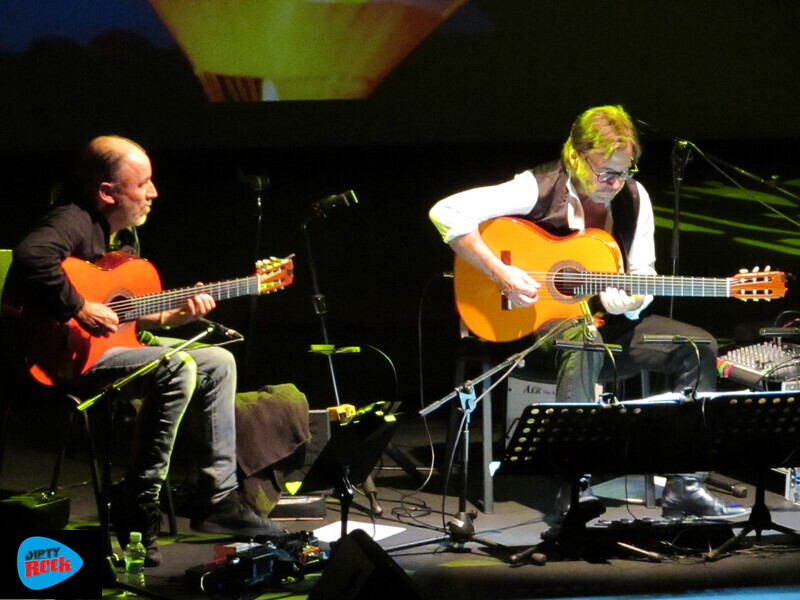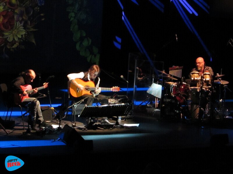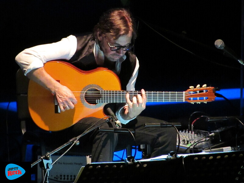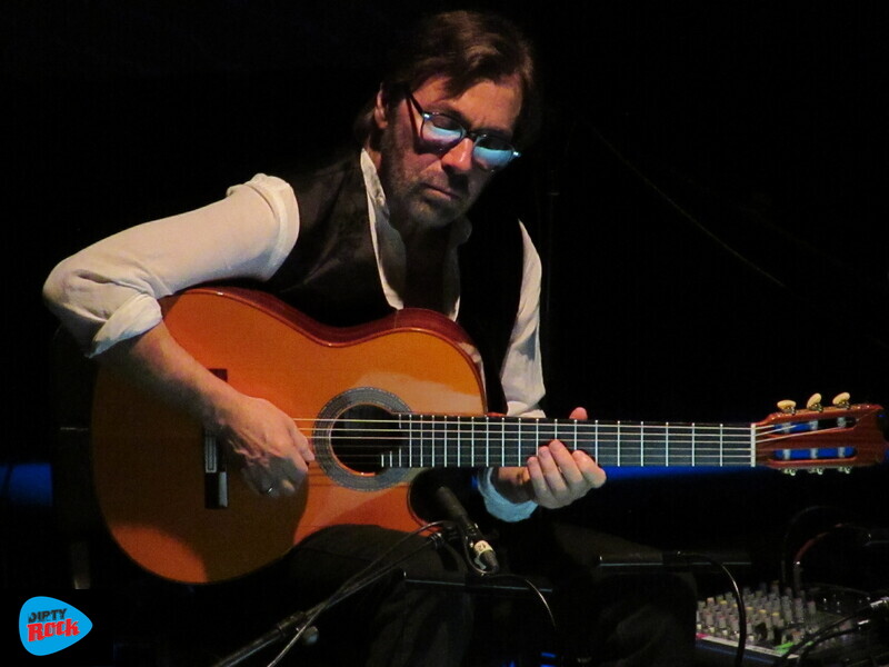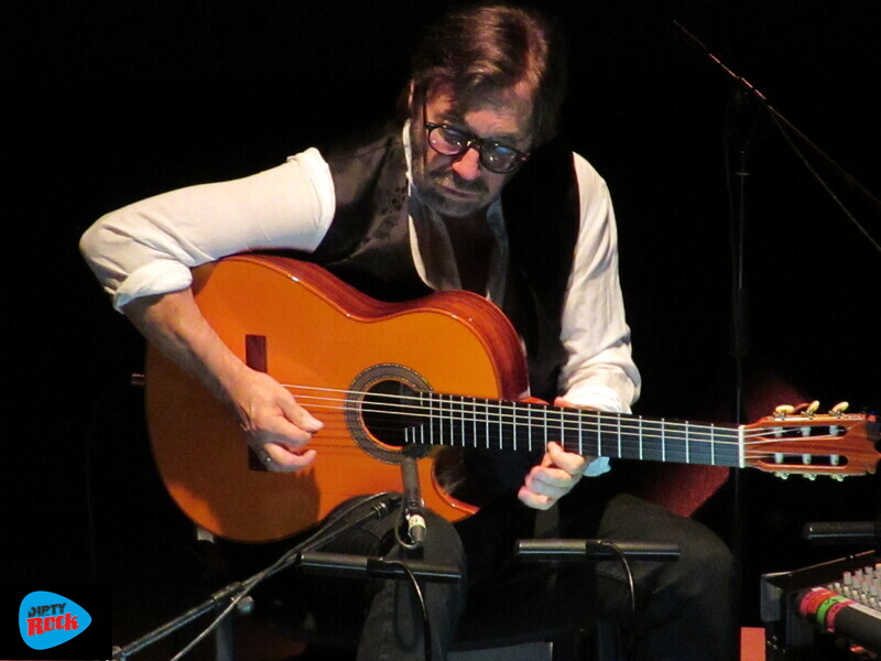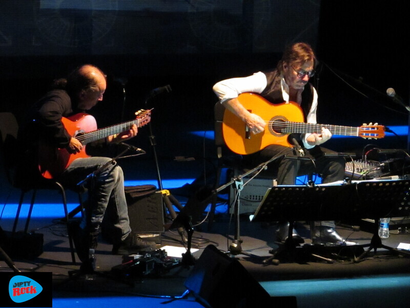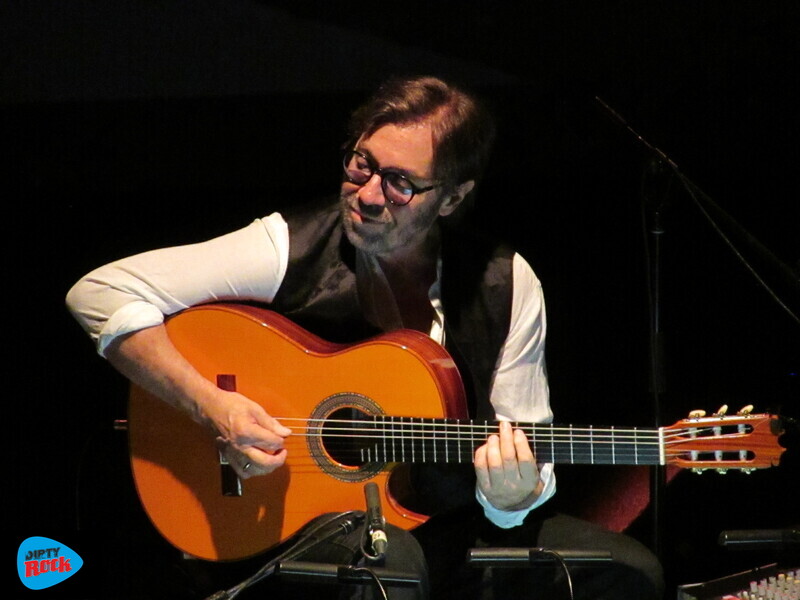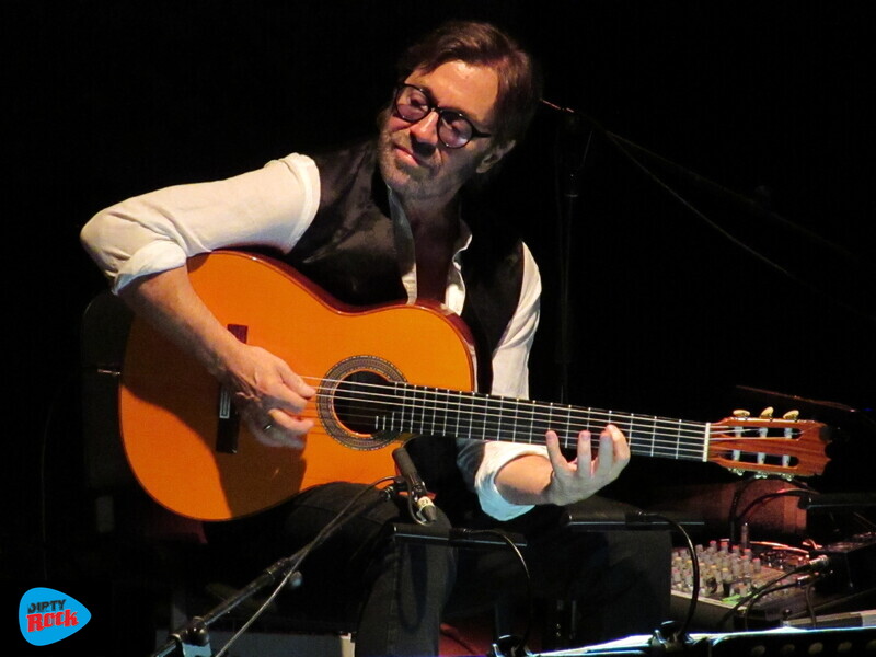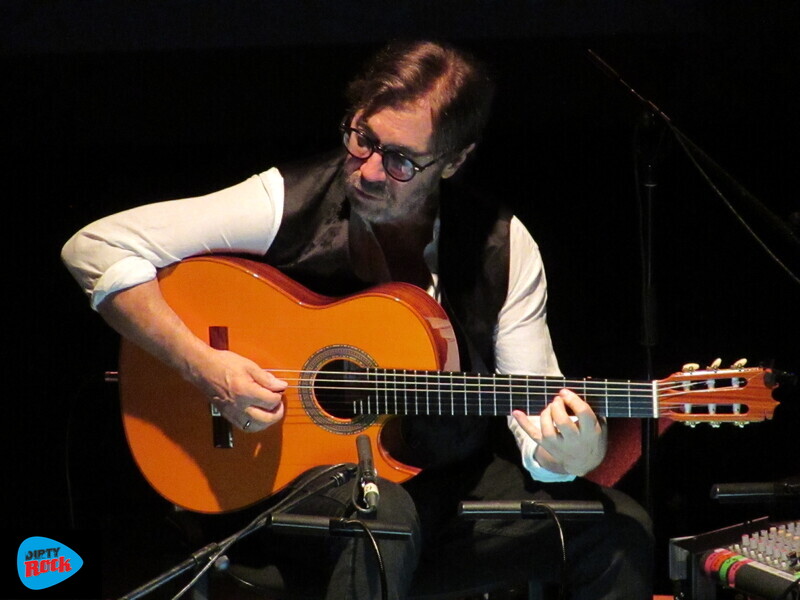 Con el teatro completamente lleno, Al Di Meola y sus acompañantes desgranaron un repertorio lleno de matices que a pesar de no ser muy extenso, sí estuvo repleto de armonía y complejidad. Las piezas seleccionadas se centraron en la presentación de composiciones de su último trabajo y en obras que abarcan desde el año 2000 hasta la actualidad. Entre tema y tema, el guitarrista compartió anécdotas y reflexiones sobres sus composiciones creando un ambiente cercano y aprovechar para serenar la tensión de los dedos. Durante el concierto, el fondo se vestía de bellos y relajantes vídeos, vivencias personales e imágenes que repasaban las distintas etapas de su carrera, su paso por Return To Forever y figuras legendarias como Paco De Lucía, Santana, John Mclaughlin… y su hija no podían faltar. Un auténtico viaje sonoro y visual que transmitió serenidad y emoción a partes iguales.