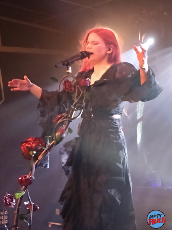 “This Dark Abyss” desgrana órbitas de cristal sobrecogidas por su calma inquieta, mientras “Vermilion Tide” ofrece la estampida de una Maja multinstrumentista que alterna los dos teclados del escenario sin soltar un exultante bajo en bandolera, en contraste con el igualmente eficaz que toca Mikkel Haastrup.