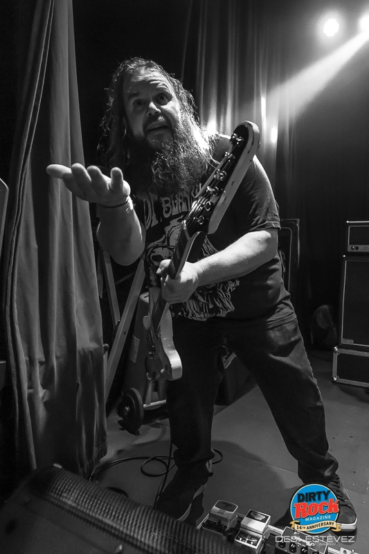 En el penúltimo recodo de la fila que conduce hacia el interior, reconozco a mi compañero de Dirty Rock Magazine Desi Estévez, con quien formaré equipo una vez más en la cobertura de otro bolo; este se encuentra charlando con un fotógrafo colega de profesión que viene en representación de Ruta 66, y ambos coinciden en señalar la excelencia de la velada que está a punto de comenzar dados los méritos cosechados por la banda que vamos a escuchar.