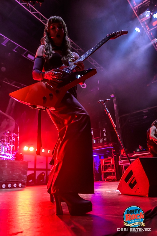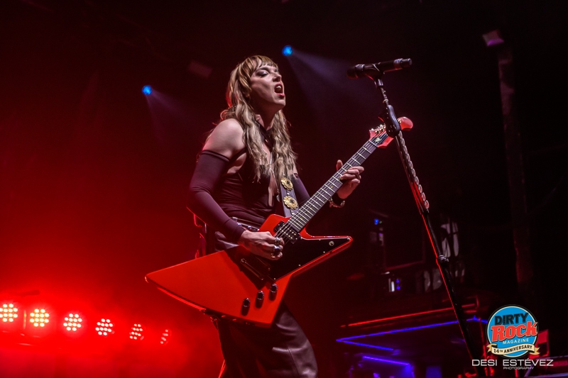 El primer gran giro emocional llegó con “Like a Woman Can” para la que Lzzy se centró en al teclado, y la atmósfera cambió completamente. La sala contuvo el aliento mientras su voz acariciaba cada frase con una mezcla de vulnerabilidad y fuerza que muy pocas cantantes son capaces de sostener y que la ha convertido, merecidamente, en una de las mejores vocalistas de rock de su generación. Siendo Halestorm una buena banda de Hard Rock, temas como este refuerzan mi creencia de que un trabajo más orientado al soul más potente le encajaría perfectamente. Sensibilidad que se mantuvo en el inicio de “Darkness Always Wins” antes de que Lzzy mostrase una vez más el lado más salvaje de su voz.