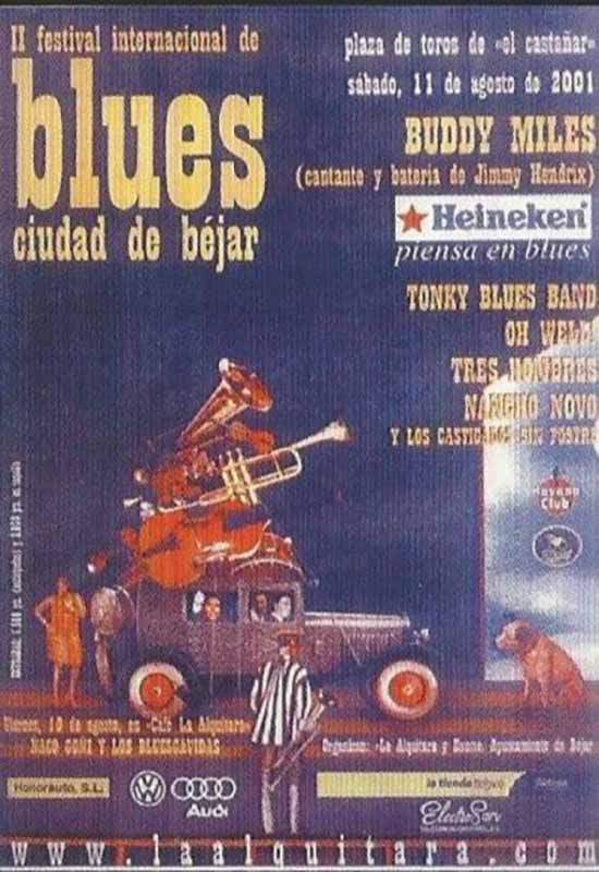 Fruto de ese impulso nació en 1999 el Festival de Blues de Béjar, uno de los encuentros más relevantes sobre el género en España. Es un misterio cómo fueron capaces de impulsar y mantener en el tiempo esta cita anual, más si se tiene en cuenta que ciudades como Madrid o Valencia carecen de un Festival de blues con tal grado de madurez y continuidad. Miguel Sánchez lo tiene claro: “Yo estoy como una cabra, ¿eh? La iniciativa fue tan espontánea como personal. Yo me pregunto, a ver, ¿por qué no se puede hacer un festival en pueblos pequeños? Y me pongo a ello. La verdad es que aquel año pedí que fuera en la Plaza de Toros y no me pusieron pega, me la dejaron. Luego había también relaciones con Francisco Simón, con Ñaco, con Malcolm, que hizo doblete, que lo facilitaron… Y salió muy bien. Fueron unas 800 personas, en un día de diario, San Lorenzo. Pero al año siguiente, el primero que vino Buddy Miles, salió muy mal”.