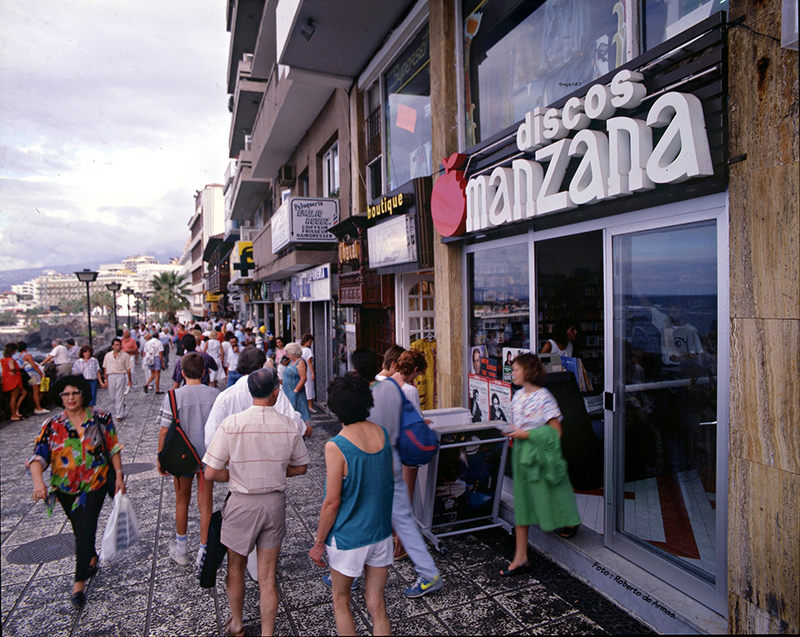 Algo impensable en un mercado tan pequeño, pero es que los turistas se los llevaban por docenas a sus países de origen disco de su sello con artistas de la talla de Rubén Blades, Celia Cruz, El Gran Combo De Puerto Rico, Fania All stars, Oscar D’León, etc. Manzana, como sello discográfico, editó los mayores y mejores éxitos de Los Sabandeños: La Cantata, Canario, Bolero, Mar. Ahora, tantos años después, Alberto González Segura triunfa con sus tiendas de El Cinematógrafo, que nadan entre el cine, la música y lo vintage en Santa Cruz, junto a la cafetería El Águila. Manzana se mantuvo en pie 27 años hasta la crisis discográfica y, con la mudanza de siglo, pasó a ser un recuerdo imborrable.
