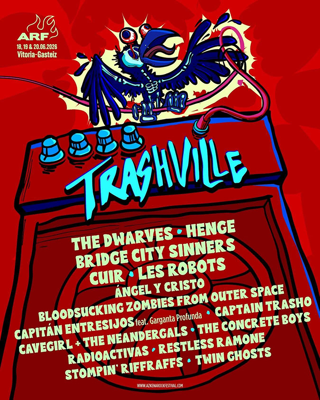 El Azkena Rock Festival que se celebra en Vitoria ha presentado el cartel y programación del escenario Trashville con la incursión de sus primeros 15 nombres al cartel: The Dwarves, Bridge City Sinners, Cuir, Henge, Les Robots, Captain Trasho, Twin Ghosts, Cavegirl and The Neandergals, Stompin’ Riffraffs, The Concrete Boys, Restless Ramones, Bloodsucking zombies from outer space, Ángel y Cristo, Radioactivas y Capitán Entresijos feat. Garganta Profunda.