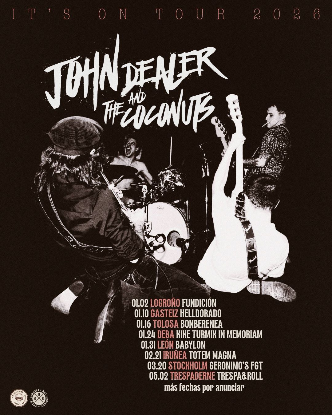 En la cara B, la banda mira a sus orígenes y celebra su recorrido con una regrabación de su primer tema, “No One Says Goodbye”, que reaparece con un sonido renovado, fresco y vibrante. Completan el álbum las dos canciones publicadas en vinilo 7” a principios de 2024, que funcionan como el preludio perfecto de este nuevo lanzamiento. La banda se encuentra ultimando los detalles de una gira ambiciosa que los llevará a recorrer ciudades, salas y festivales del panorama musical actual, con más fechas por anunciar en breve. Prepárate para vivir el rock and roll en su máxima expresión!!! John Dealer & The Coconuts están en su mejor momento, listos para ofrecer un directo arrollador que no dejará indiferente a nadie. Ahí van las primeras fechas!!!