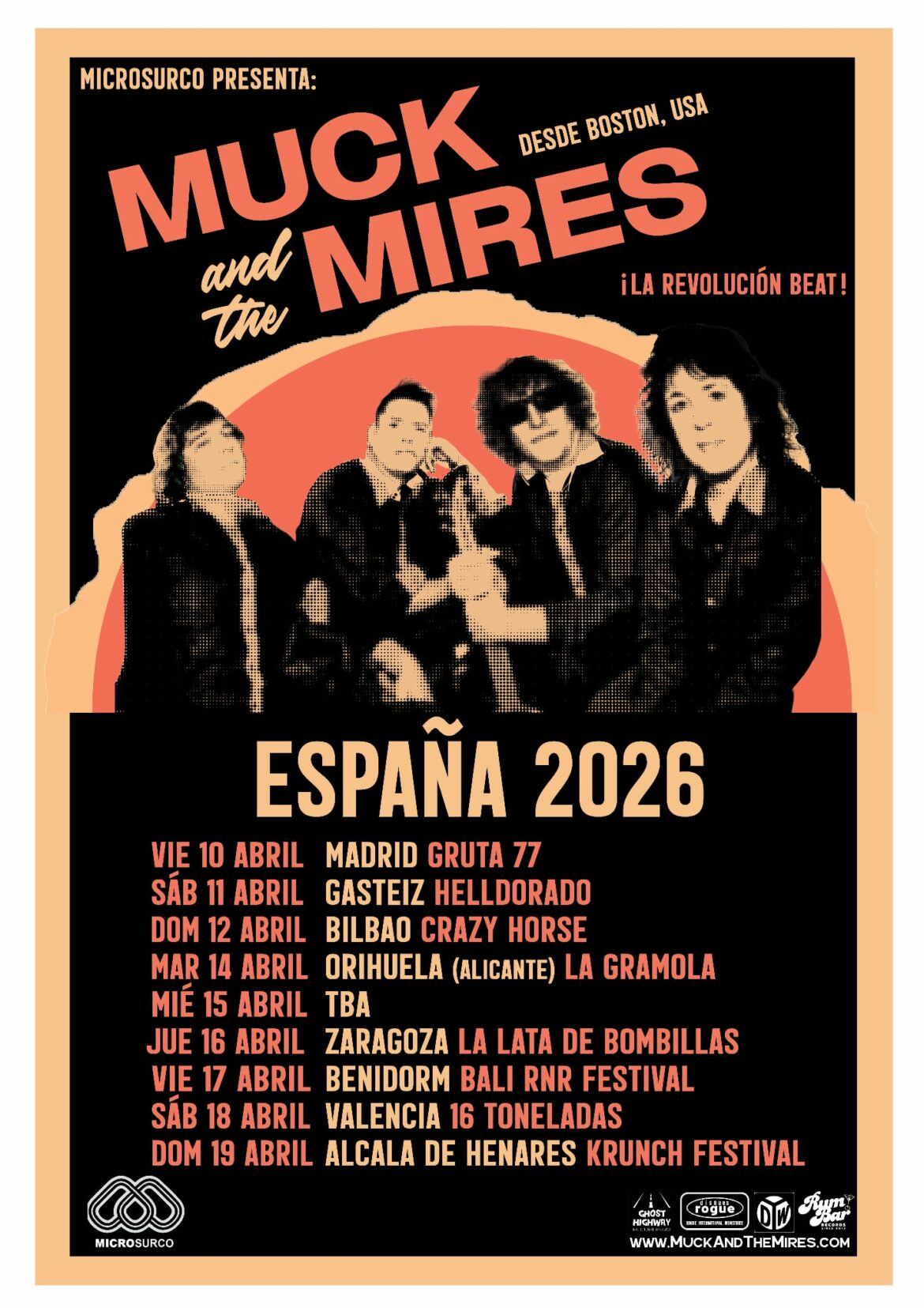 Muck and the Mires vuelven a nuestro país durante el mes de Abril para presentar su último larga duración, “Beat Revolution”, junto a sus composiciones más recientes editadas en un single de 7”. La banda estadounidense realizará una intensa gira de nueve días consecutivos, sin descanso, prometiendo noches de sudor, energía y puro garage rock and roll. Procedentes de New England (Boston), Muck and the Mires llevan más de dos décadas defendiendo un sonido que bebe directamente de la Invasión Británica de los años 60, aunque pasado por el filtro de la urgencia y la actitud punk.