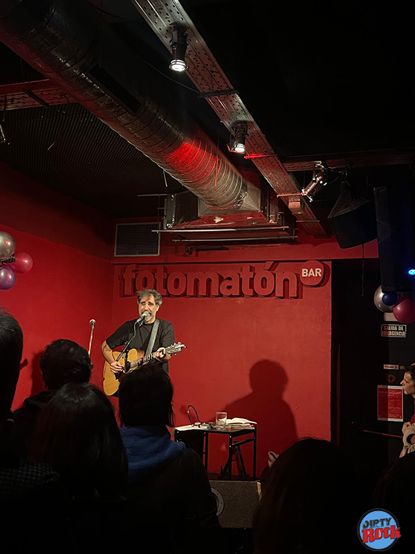 Santi Campos ofreció en El Fotomatón uno de esos conciertos que recuerdan que, a veces, basta una guitarra y una voz para llenar una sala con más verdad que muchos espectáculos llenos de producción. Fue por la mañana, en un ambiente cercano y sin artificios, con un repertorio abierto que fue tomando forma sin lista previa y con el público participando activamente. Treinta años de carrera puestos al servicio de un encuentro que buscó la proximidad sin caer en el exceso emocional.