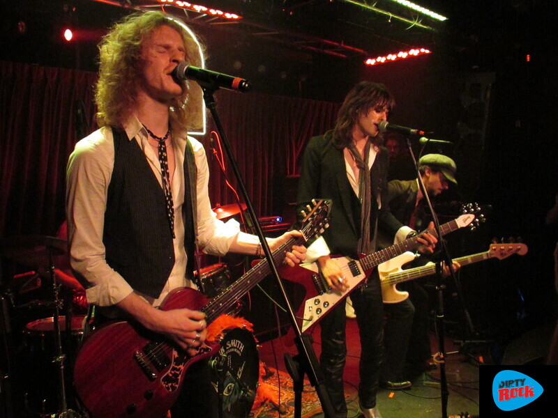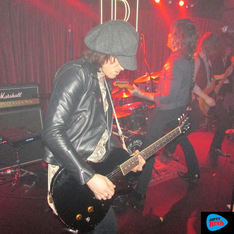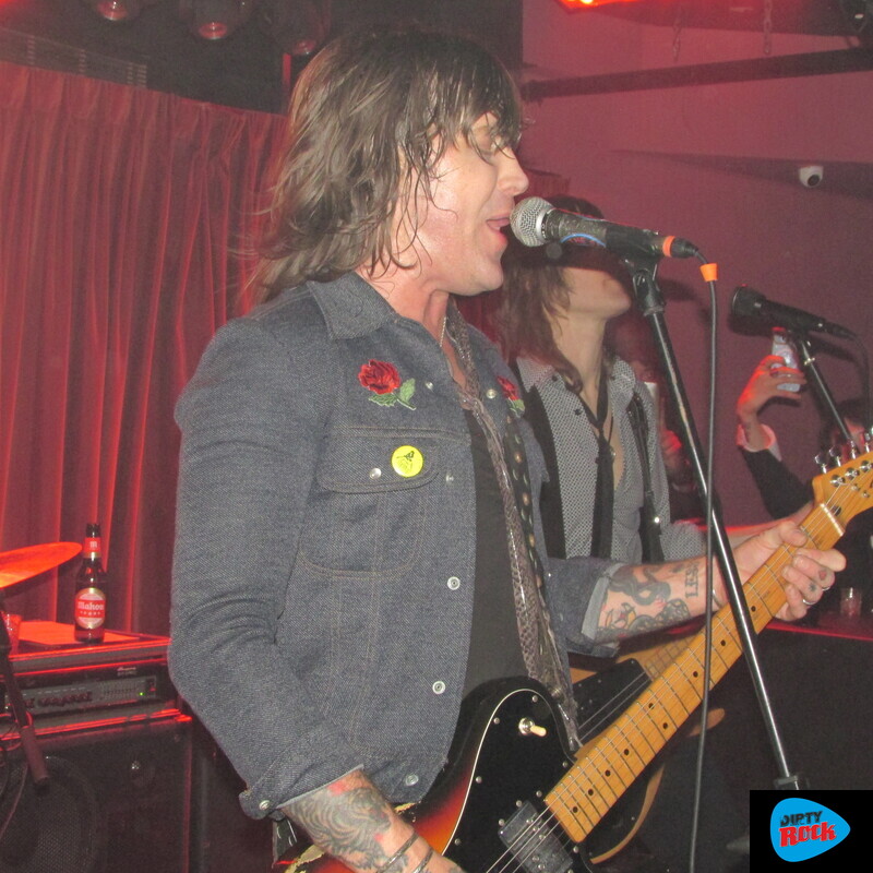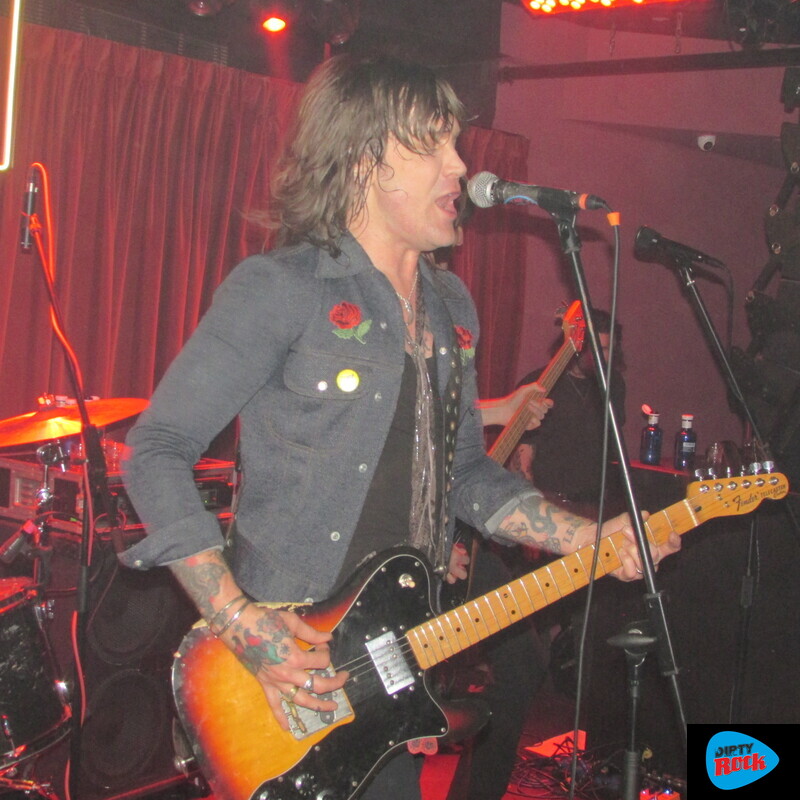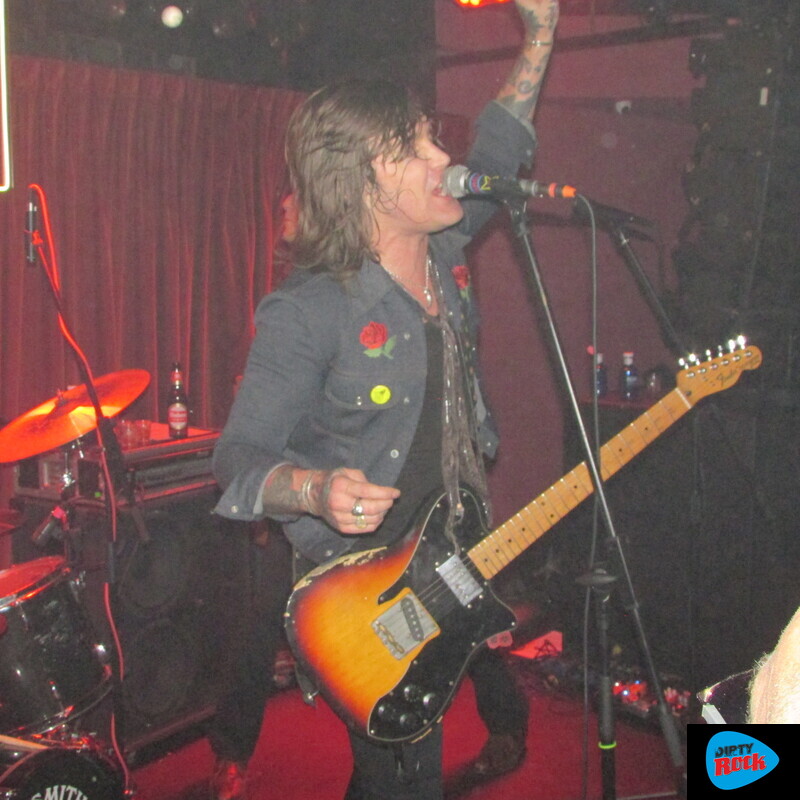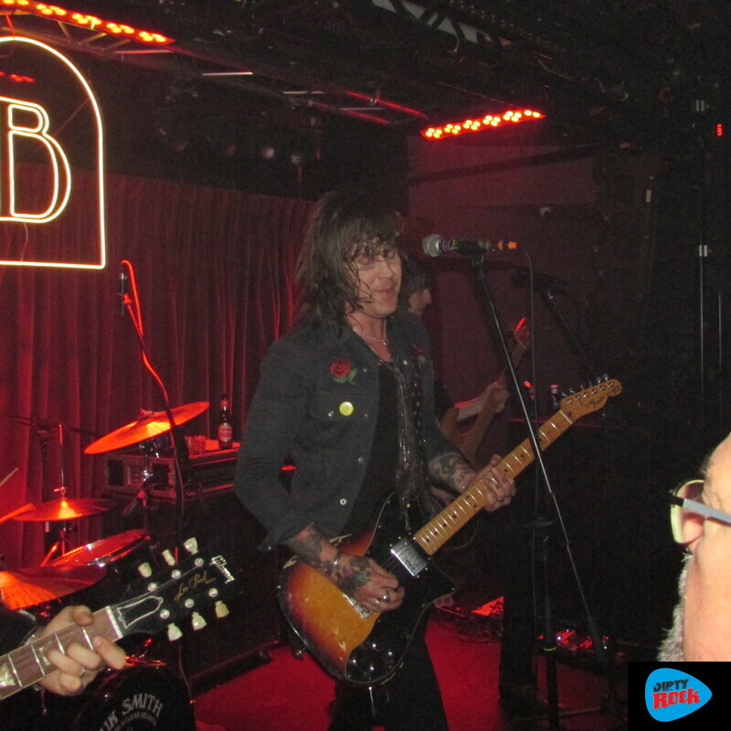 Muy al contrario, pese a su temprana edad, demostraron solvencia y actitud, defendiendo temas pegadizos de ritmos sencillos pero enérgicos haciendo énfasis en los riffs de guitarra y claras influencias del rock más tradicional. La indumentaria, heredera de un estilo que vivió su esplendor en los años setenta y que décadas después sigue vigente, completó una actuación eficaz dejando la sala caldeada para recibir a los protagonistas de la noche. Desde los primeros acordes quedó claro que lo de Tuk Smith no es un ejercicio de nostalgia, sino una reivindicación viva del rock como forma de expresión. Influencias bien reconocibles aparecieron filtradas por una personalidad propia que rehúye vivir del pasado. Sobre el escenario, tanto Tuk como sus compañeros se mostraron cómodos y con carisma. “Siempre me ha gustado el aspecto visual del rock ‘n’ roll, es parte de mi ADN”, ha confesado en más de una ocasión, y basta verle en directo para entenderlo. Acompañado por Tobin Dale a la guitarra, Matthew Curtis al bajo y el nuevo integrante, Ricky Farelli a la batería consiguieron un sonido compacto y afilado.