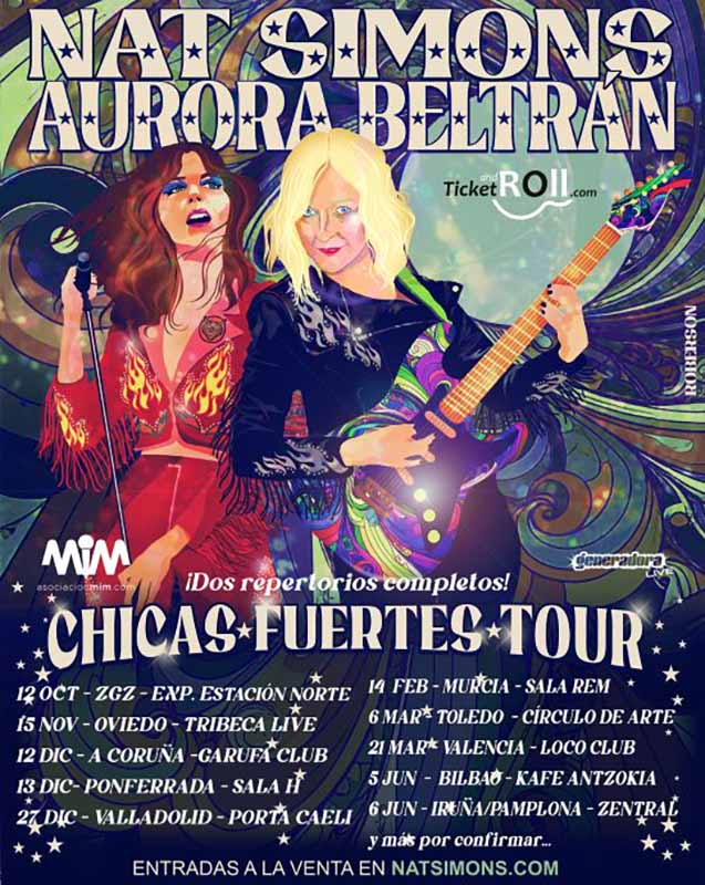 Nat Simons y Aurora Beltrán están en una gira conjunta llamada «Chicas Fuertes» en la que comparten escenario en unas ciudades de forma exclusiva. Ambas artistas tocarán su propio repertorio y el espectáculo finalizará con bis de varias canciones colaborando juntas.