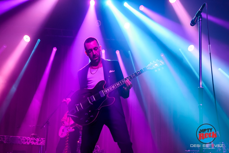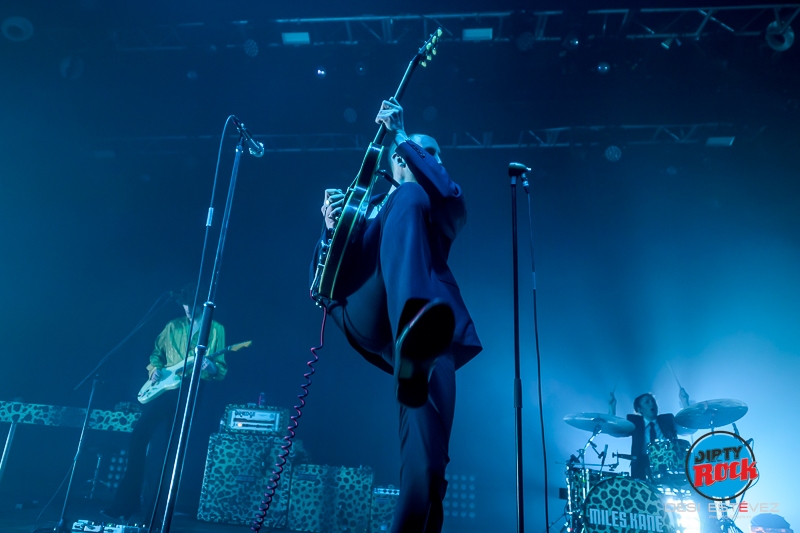 Con la sala ya con una buena afluencia de público pero lejos del sold out le tocaba la vez a Miles Kane. La cosa no pudo empezar mejor con la muy Marc Bolan «Electric Flower» que le hizo conectar con el público inmediatamente. El británico había venido a trabajar sin duda, ya que el concierto fue encadenando una canción tras otra, con leves interactuaciones con la audiencia. Y si Miles Kane se puso el mono de trabajo, lo mismo se puede afirmar de la banda de campanillas que le acompaña, con dos guitarristas que parecían salidos de Carnaby Street.