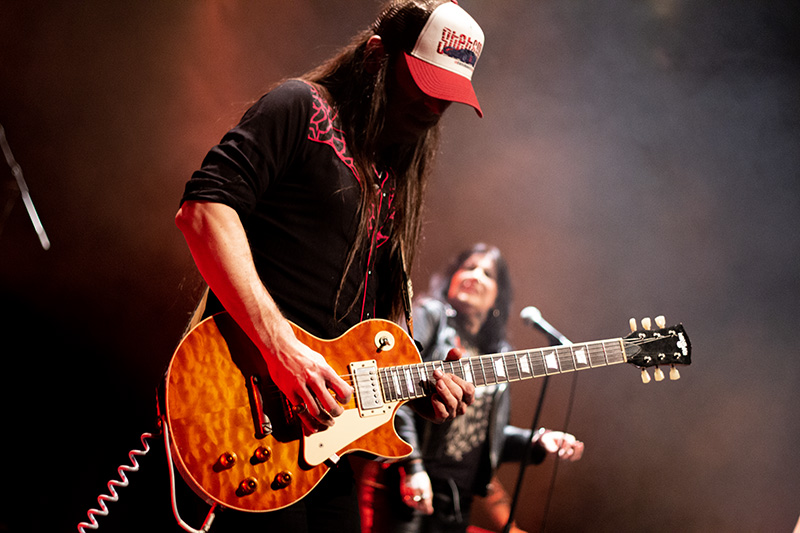 La introducción mediante la épica de The Lonely Shepherd que hizo célebre Tarantino en Kill Bill daba pie a la banda que entraba desbocada en escena atacando “RNR Wheels”, abrió el telón como una declaración de intenciones, pura gasolina y sudor.