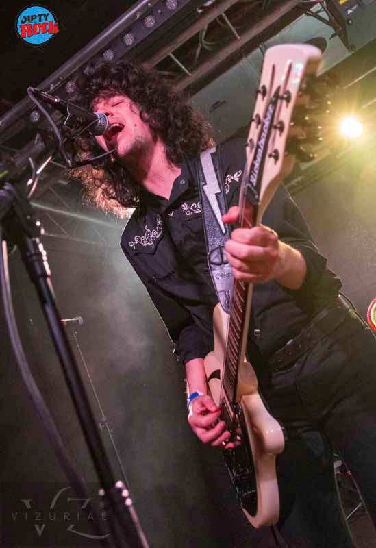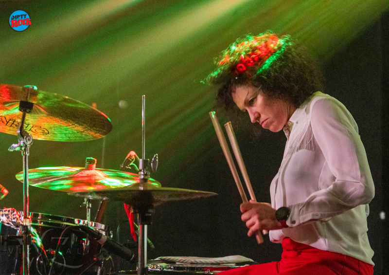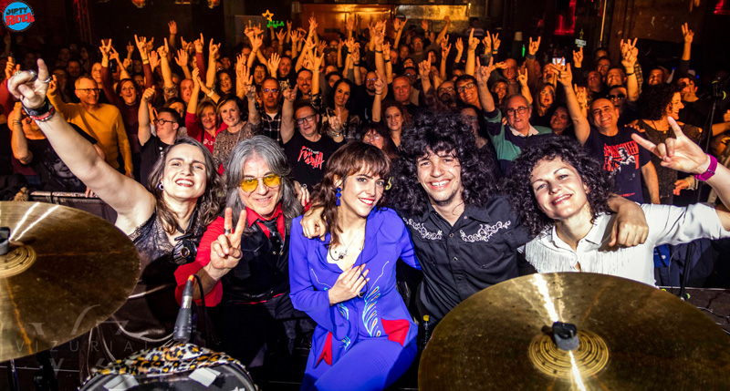 La banda fue un bloque sólido: Laura Solla regaló riffs con sus seis cuerdas y coros muy precisos. A su lado Jaime Hortelano en la guitarra rítmica, como un pegamento sonoro, dando cuerpo y textura al sonido con sobriedad y personalidad y Pablo Rodas al bajo mantuvieron una base instrumental de cemento armado, permitiendo que todo el combo se asentara con una naturalidad pasmosa. Y una imponente Mariana Pérez a la batería, precisa y arrolladora, demostrando que la contundencia también tiene nombre de mujer. Pocas artistas se atreven a cantar muy bien y darle a las baquetas. ¡Impresionante Mariana! Una banda sin fisuras. Nos agradaron mucho la presencia de Laura y Mariana . No estaban allí para cumplir ninguna cuota de género; estaban allí porque son músicos sobresalientes que demostraron su valía por puro mérito propio. Nada sobraba, nada faltaba. Todo sonaba en su sitio, compacto y con una riqueza vocal que envolvía la sala.