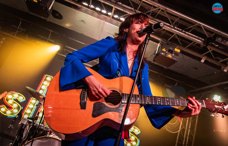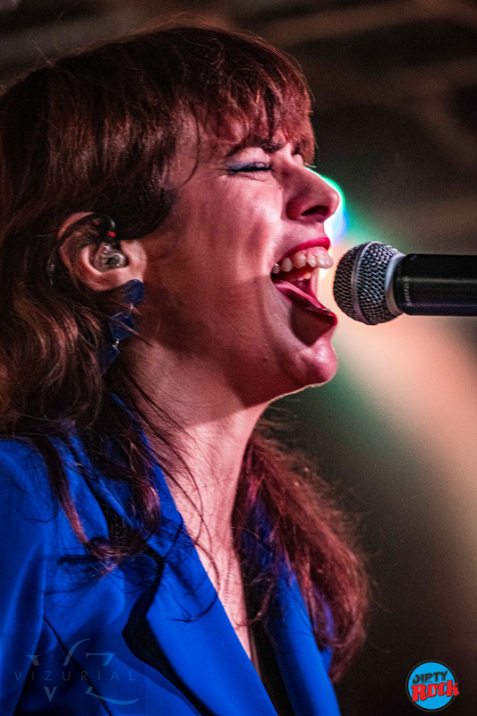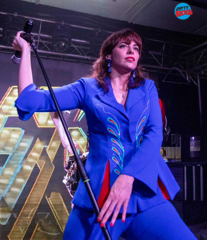 El sábado de los Enamorados del Rock (14 febrero) prometía sensaciones fuertes…que vamos a contar. Apenas veinte minutos después de la hora prevista, y con la sala casi llena pese al vendaval que azotaba Murcia, Nat apareció enfundada en traje azul, lista para incendiar el escenario. Abrió con “Delorean”, adelanto de su próximo trabajo, Pregúntale a Sarah Connor: un viaje eléctrico entre la nostalgia ochentera y la urgencia del ahora. Sin tregua enlazó con “Macabro plan”, de Felina, arenga rockera que llama a la resistencia y que terminó de encender a un público ya entregado. Con “Alain Delon”, tercer single del nuevo álbum, desplegó su faceta más icónica y bailable, con aroma a rock clásico y groove contagioso. “Ley animal” y “Extraña religión” confirmaron que la noche iba en serio: guitarras endiabladas, rabia bien canalizada y una Nat desatada, contoneándose con el pie de micro, buscando cada mirada, cada palma, cada grito.