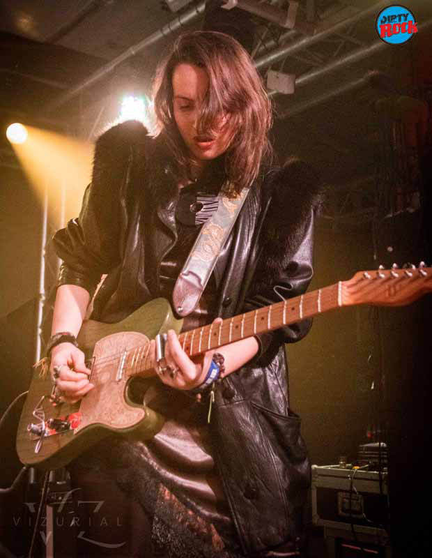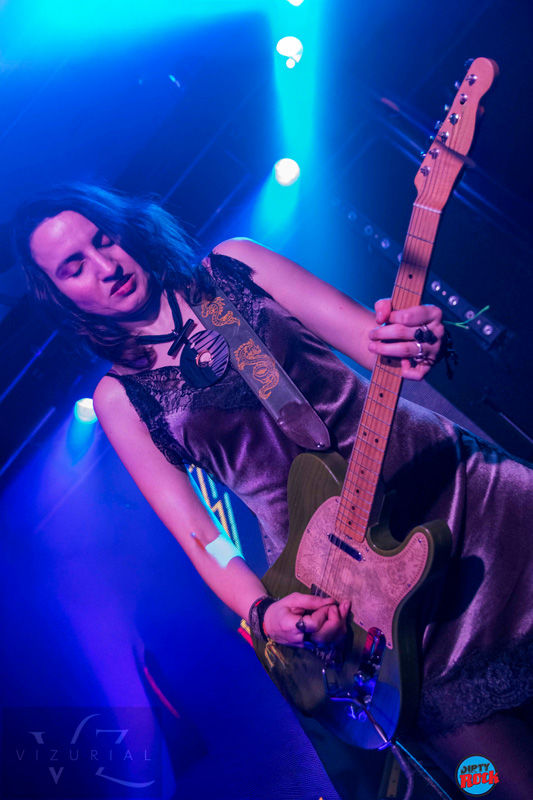 El espacio reducido del escenario limitaba sus movimientos, pero no su actitud. Y entonces llegó el homenaje a la ausente Aurora: “La noche es” (Because the Night).” La sala entera saltó al unísono en un momento de comunión absoluta entre banda y público. Fue uno de esos instantes que justifican kilómetros de viaje. La sorpresa continuó con la aparición del artista local Carlos Vudú con su guitarra. Carlos es un amigo y cómplice habitual en los conciertos de Nat y viceversa.