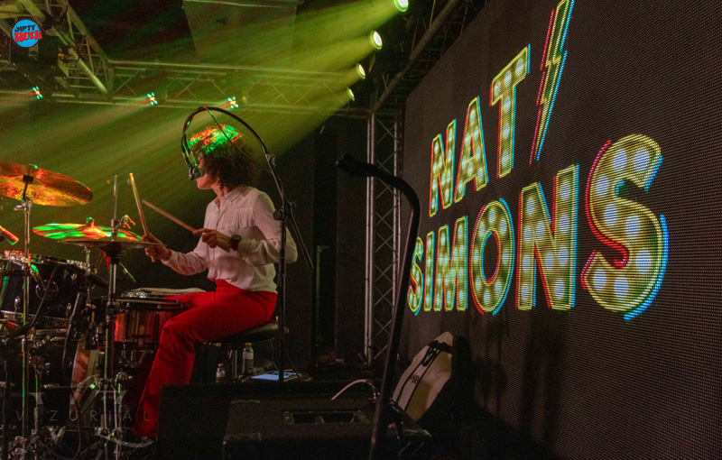 Pero teníamos la certeza que si alguien sabe convertir la adversidad en buenas vibraciones es: NAT SIMONS. Y su banda, una apisonadora emocional, no iba a dejar caer la noche. Tuvimos la suerte de contar con Carlos Vudú, tan querido por el público murciano, quien supo recoger el testigo con brillo y carisma.