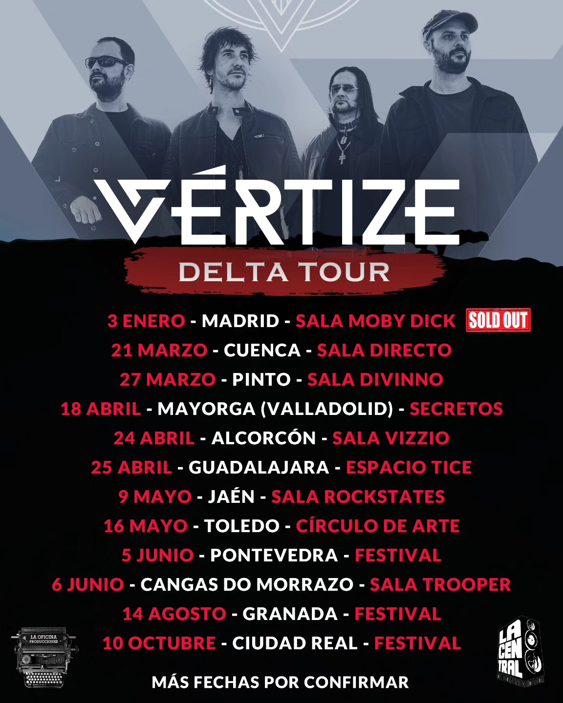 Un debut que suena familiar, pero que deja ver el potencial de una banda en pleno proceso de consolidar una identidad propia, apoyada además por una puesta en escena muy cuidada y directos cargados de energía y complicidad. El disco tras recibir una gran aceptación, lo siguiente es presentarlo en directo. De esta manera Vértize anuncian una gira nacional que recorrerá el país durante 2026. Jose Roa (guitarra y voz), Alberto “Janfri” de la Mata (guitarra) y NJ Cardoso (bajo), Dani Díaz (batería) nos presentan las fechas que tienen programadas para este 2026… habrá más confirmaciones!!!