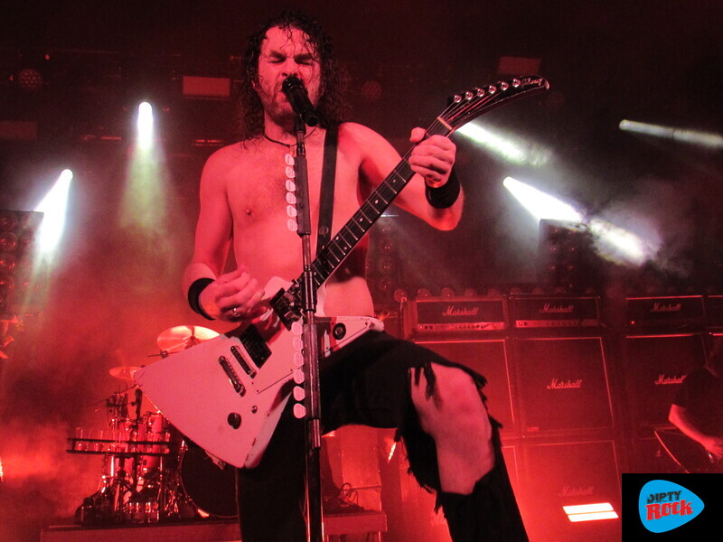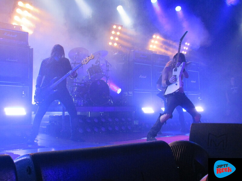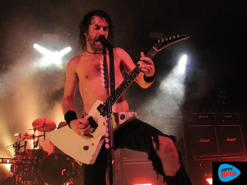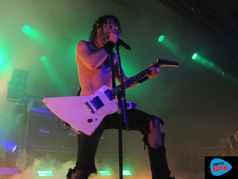 La pérdida de su líder, Jay-Jay Winter, marcó un punto de inflexión. Desde entonces, cada actuación es un estímulo para mantener vivo el deseo del compañero desaparecido. Homenaje por partida doble con la dedicatoria del “Born To Raise Hell” de Motörhead al recientemente fallecido Phil Campbell. Fieles a un estilo que impuso un tal Lemmy, siendo su gran fuente de influencias, también cuidan la imagen y actitud en el escenario. Indumentaria adecuada, buen posicionamiento en el escanrio y eso sí… carreritas sin sentido pero que dan vistosidad a la actuación. Los amplificadores Marshall funcionando a su máxima capacidad, fueron el baluarte de una actuación que dejó el patio más que caldeado para recibir a los protagonistas de la noche. Si Asomvel calentó motores dejando un buen charco de gasolina, Airbourne directamente prendió la cerilla y la tiró. Los herederos del hard rock australiano presentaron su último trabajo “Gusty”. Embajadores de los riffs de guitarra potentes, constancia rítmica y una desbordante energía conectaron con el público a la primera de cambio.
