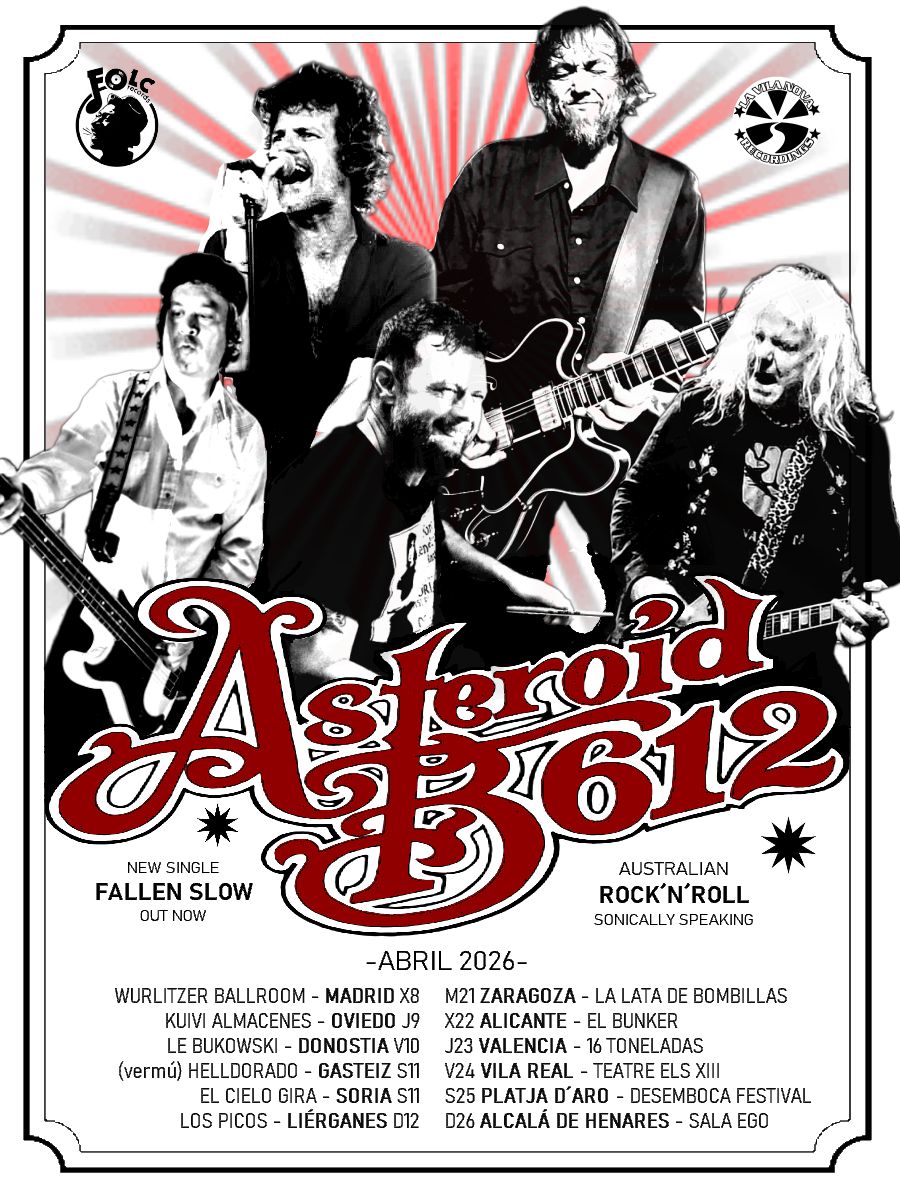 La mítica banda australiana Asteroid B-612 aterriza en nuestro país con una gira muy especial para presentar “Road, Stars”, su esperado álbum de regreso tras más de 25 años sin publicar nuevo material. La leyenda del high-energy rock’n’roll vuelve a rugir con la misma intensidad que los convirtió en una de las formaciones underground más respetadas de los años 90. Formados en Sídney a comienzos de los 90 bajo el liderazgo del guitarrista Johnny “Casino” Spittles, Asteroid B-612 tomó su nombre del pequeño planeta donde vivía el protagonista de El Principito, la obra inmortal de Antoine de Saint-Exupéry. Pero su sonido estaba lejos de la ingenuidad, crudo, urgente y eléctrico, con claras reminiscencias a MC5, The Stooges y Radio Birdman.
