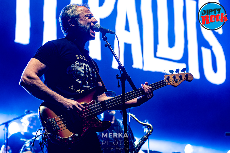 “Cielo hermético” trajo ese groove que los caracteriza, una letra efectiva y certera, “Cada vez cadáver” nos trasladó a esos trabalenguas de tragicomedia. A golpe de “Whisky barato” y su boogie cantinero seguimos cantando, al final del tema un duelo de violín a cargo del guitarrista burgalés Diego Galaz y Jorge ambos nuevos Fitipaldis. “Como un ataúd” es puro rock & roll muy Platero, hubo en las primeras filas una indisposición que se subsanó con los servicios médicos.