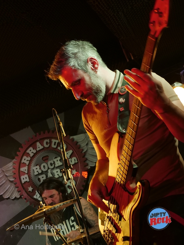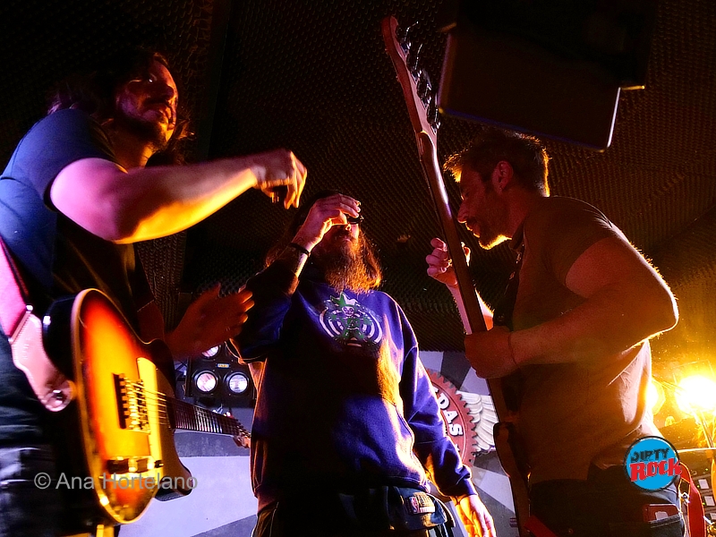 Para calentar el ambiente actuaron como invitados Cadáver de Cabra, una criatura que condensa el sonido más pestilente llegado directamente desde el inframundo. Combinan sludge metal y stoner doom. Afinaciones graves, fuzz y muchos decibelios. Sonidos densos y eléctricos para los amantes del rock más pesado y envolvente. Dicen que les gusta el Blues…Kath estuvo al bajo, Dani a la guitarra, soberbio en los punteos, Aston en la voz y guitarra y Juan Carlos a la batería.