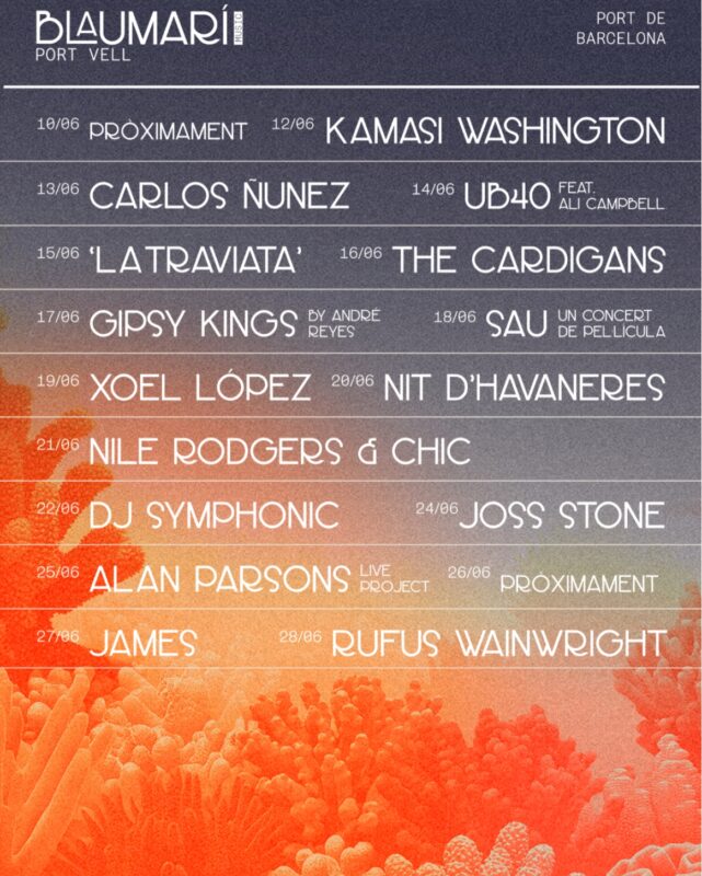El cartel se completa con nombres que amplían el espectro sin perder identidad: la sensibilidad de Rufus Wainwright, la potencia vocal de Joss Stone, la elegancia progresiva de Alan Parsons Live Project, o la solidez escénica de James. A ello se suman propuestas que conectan con la raíz y la tradición, como Gipsy Kings (by André Reyes), Carlos Núñez o la Nit d’Havaneres, configurando un recorrido sonoro que dialoga con el entorno marítimo que lo acoge.
